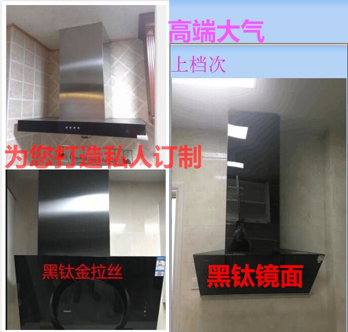 专业定做油烟机装饰罩不锈钢细纹拉丝银色,黑钛金拉丝,黑钛金镜面。202/304可选 ,默认报价202拉丝银色。