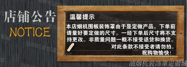 围板是定做的产品没有现货,下单后1-2天发货,如特殊情况发不了,要推迟一天发货。亲定制的产品一旦下单,尺寸就不可更改,定制的产品没有质量问题是不可退换货的,定制的产品在加工过程中表面难免会有少许划痕。不过在装好后,不仔细看很难发现的,不会影响整体效果。对划痕一点都不能接受的请慎拍!亲请放心整个过程我们会努力做到更完美!