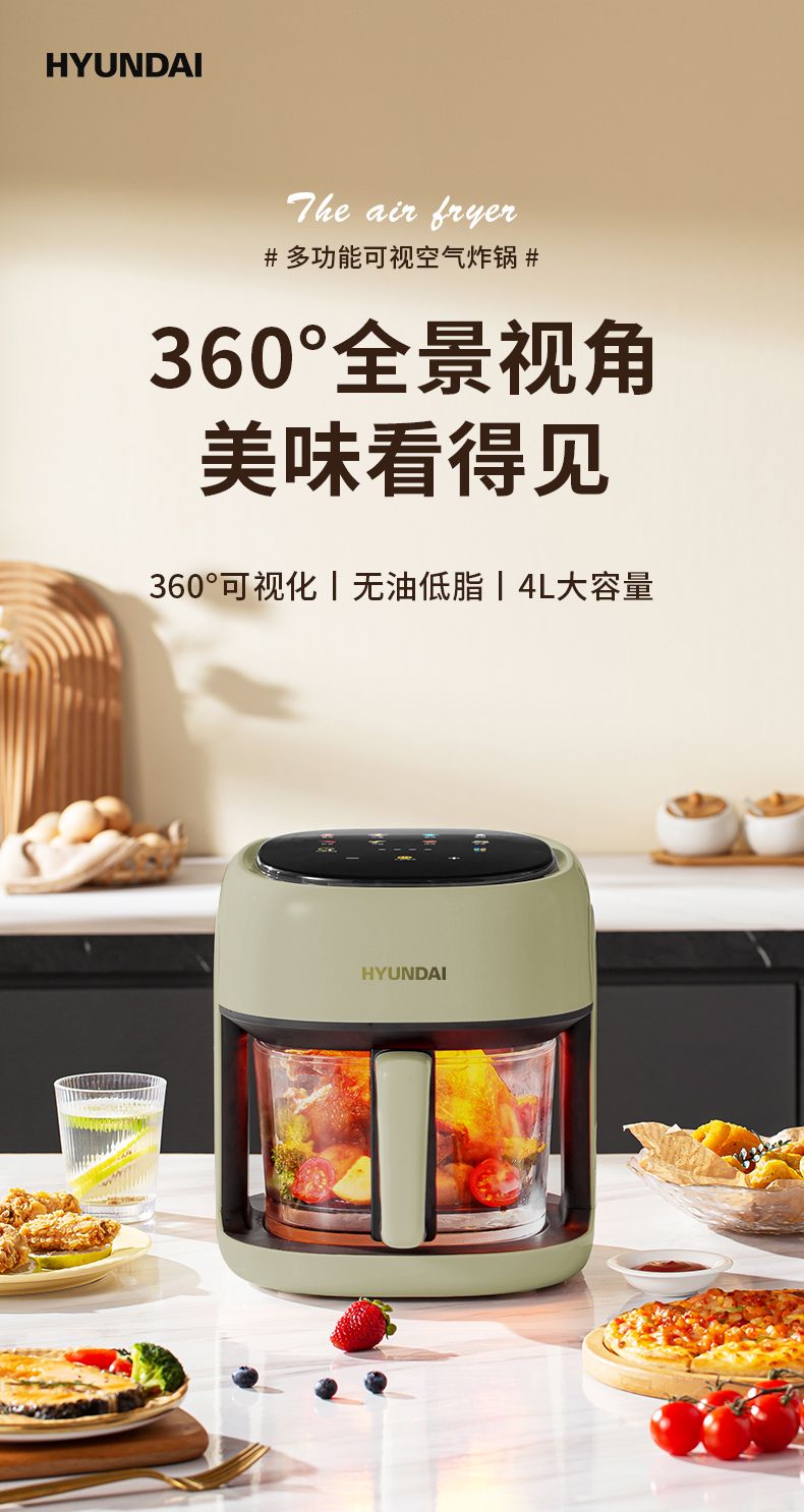 HYUNDAI可视化空气炸锅家用多功能一体烤箱大容量透明电炸锅无油